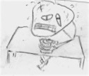 Some drops have landed on my chin. They feel slimy. My stomach does one and I’m wiping my mouth with the back of my sleeve over and over. I spit again straight into my glass and I notice something crawling in the liquid.